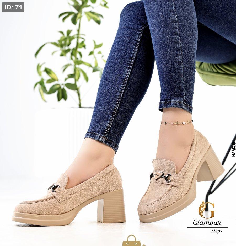 حذاء عصري بكعب متوسط يجمع بين الفخامة والراحة، بتصميم يناسب الإطلالات اليومية والرسمية.
